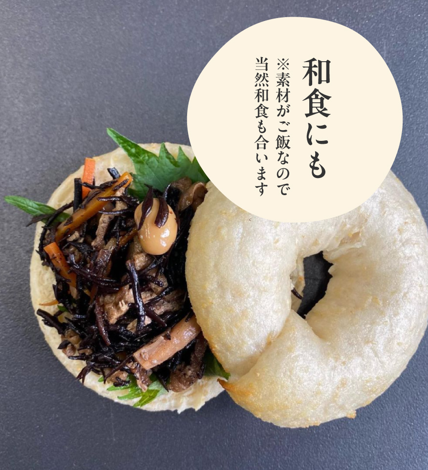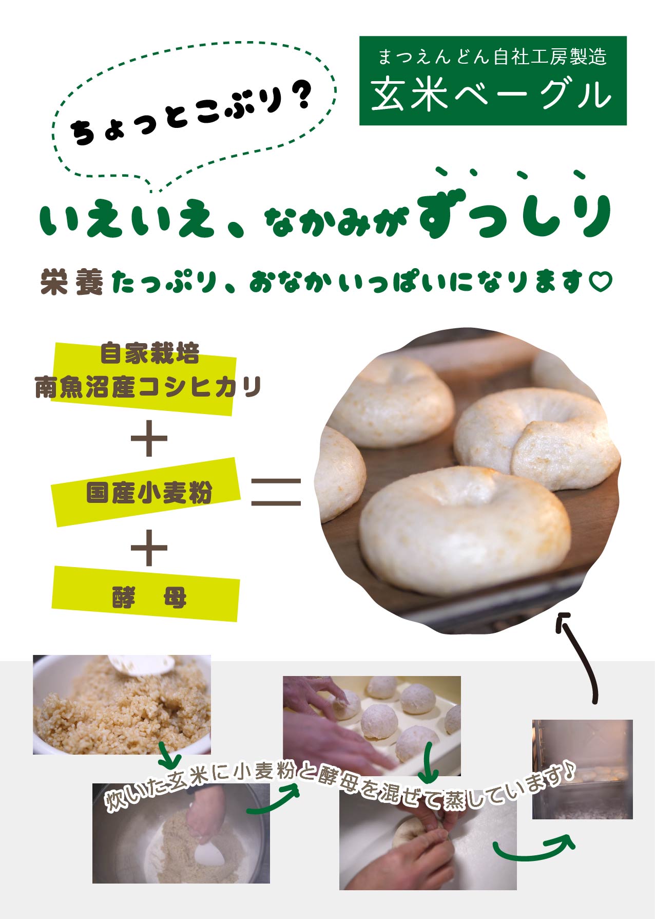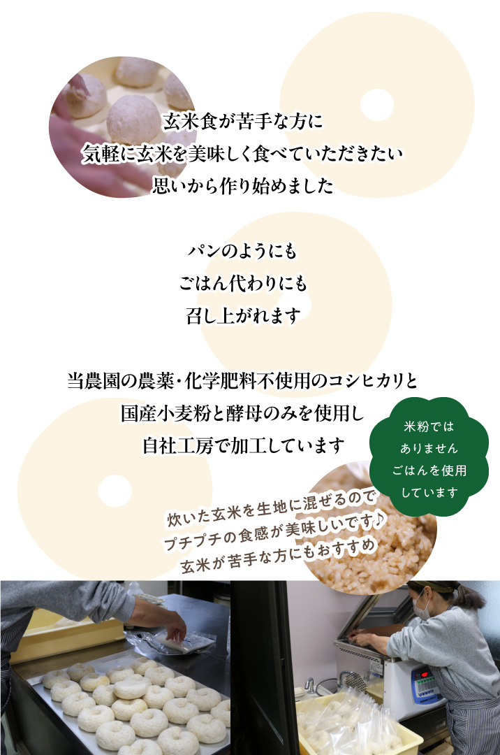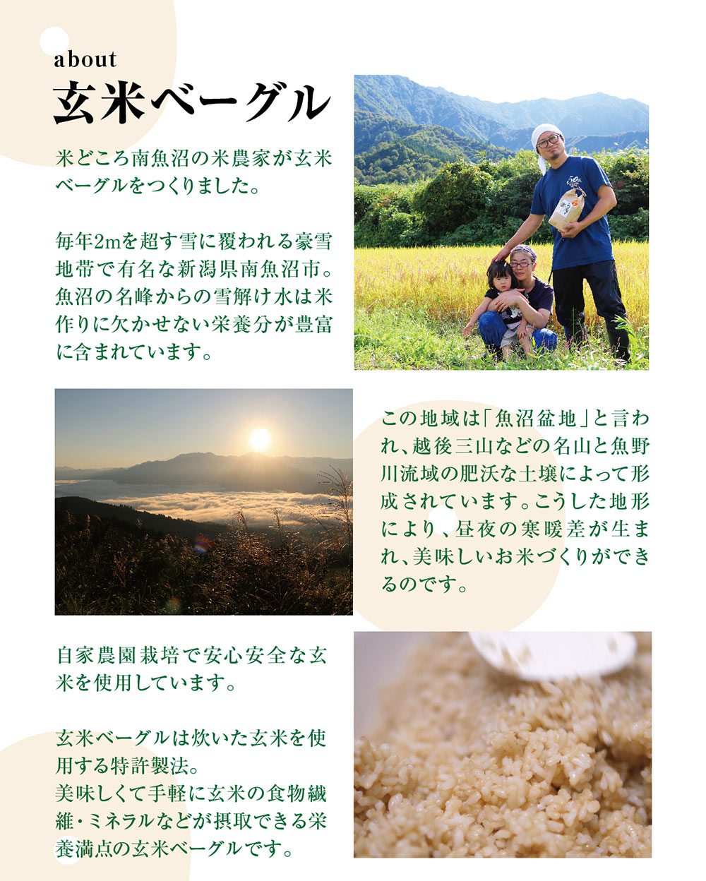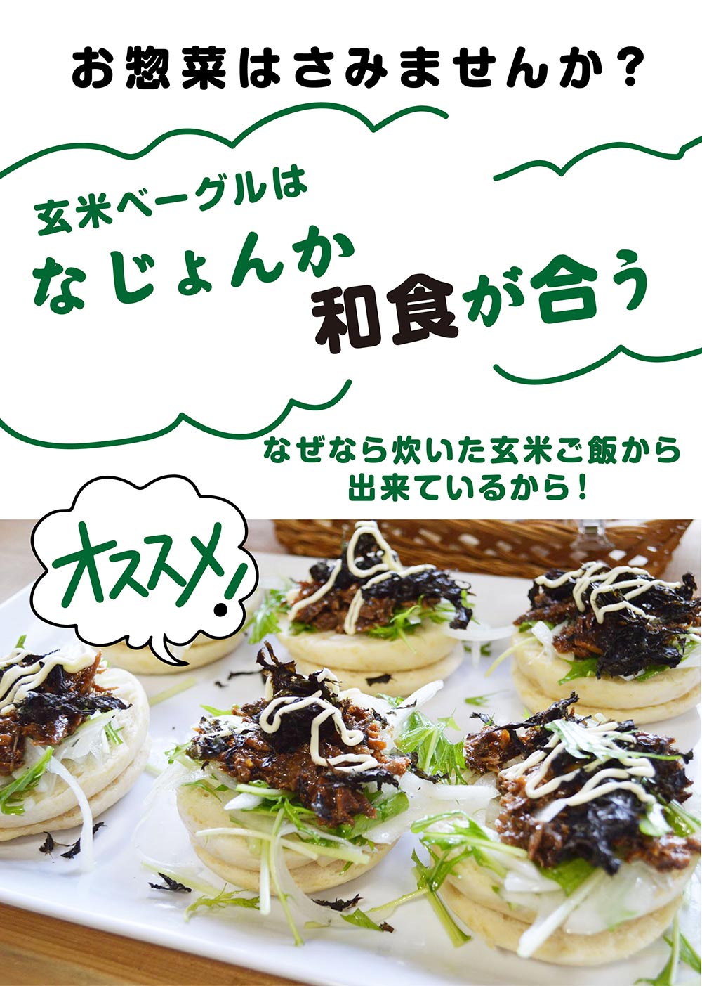 ※玄米ベーグルは、菜根譚農場さまが製造開発し、特許取得済の「玄米じゃぱん(R)」と同じ製法です。